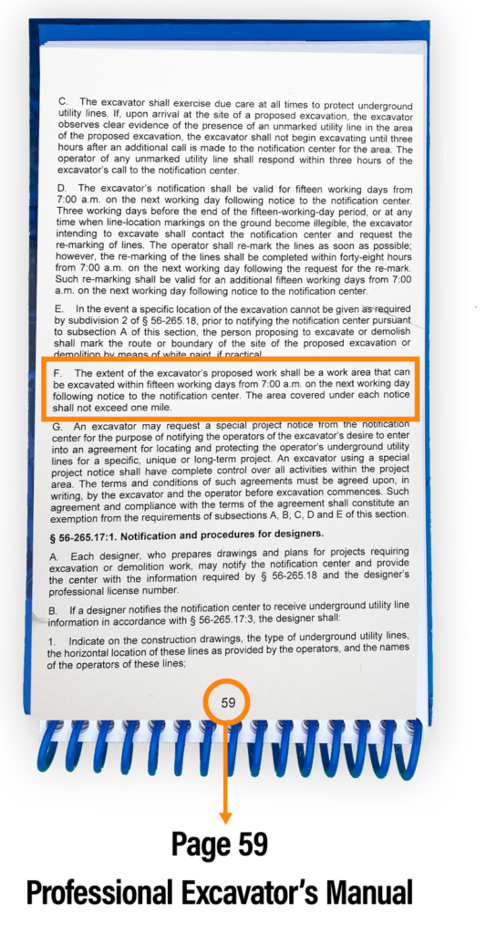 The Best Practices Guide contains helpful information for understanding the new law change for one-third of a mile and how to describe non-linear areas of excavation.