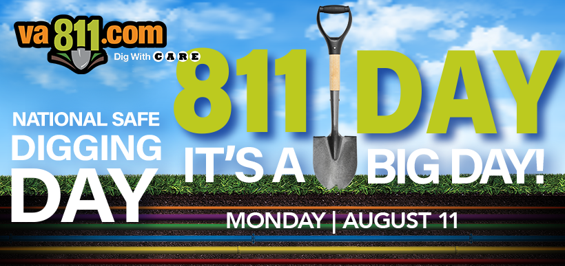 811 Day serves as an important reminder for Virginians to contact Virginia 811 before any digging project to have public underground utility lines marked. Every nine minutes, an underground utility line is damaged because someone decided to dig without first contacting 811.