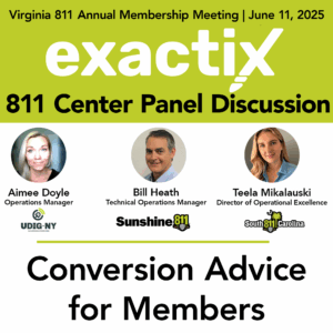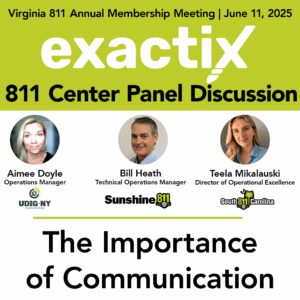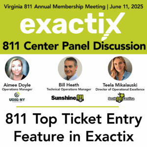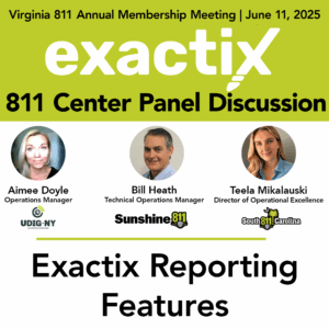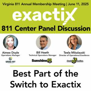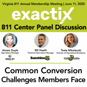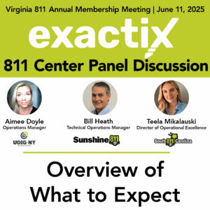 🎥 Watch our Exactix Panel Highlights from the 2025 Virginia 811 Annual Membership Meeting. In this short video series, representatives from South Carolina 811, UDigNY, and Sunshine 811 share real-world insights, tips, and experiences with Exactix. Whether you’re new to the platform or preparing for the transition, these clips offer valuable guidance to help you get ready.