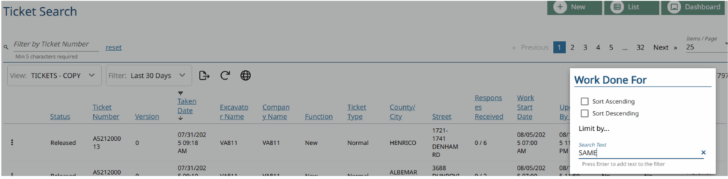 - Navigate to the Ticket Search Tool: Use filters to search by date range, company name, or the individual who submitted the requests.