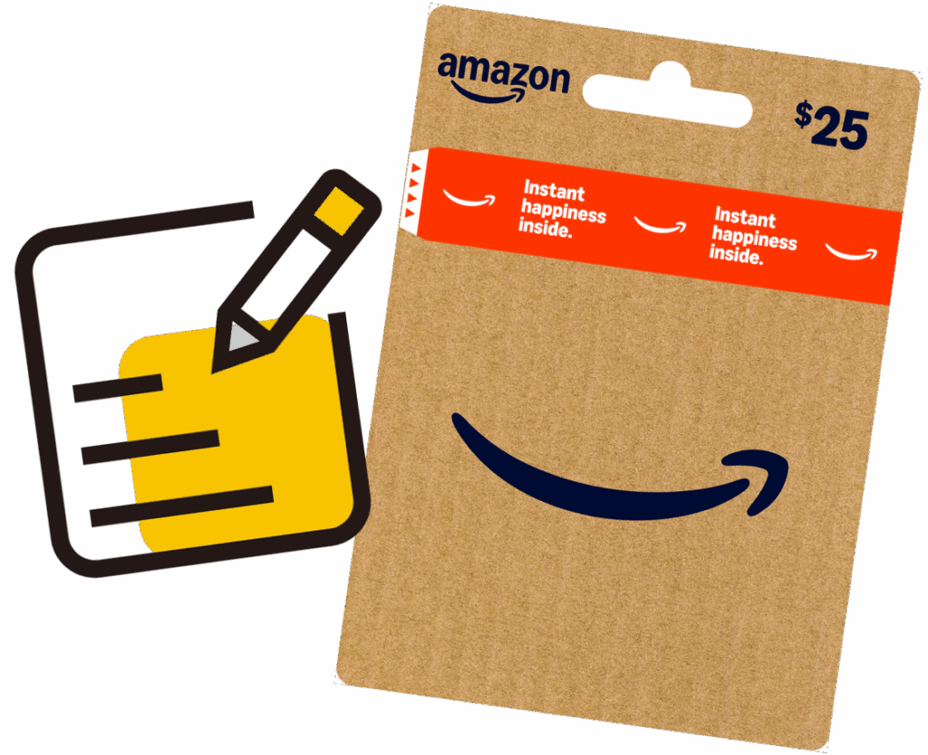 Every survey you complete counts as an entry to win one of 20 $25 Amazon gift cards — the more you complete, the more chances you have to win!