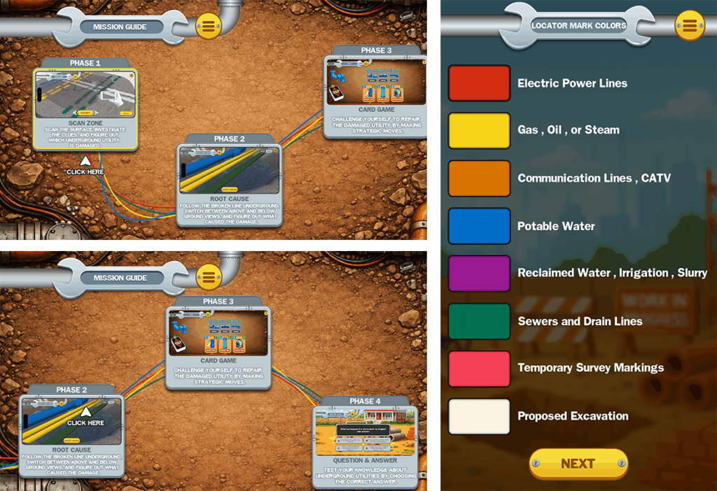 Through guided gameplay and scenario-based learning, players gain practical knowledge that promotes safer practices before and during excavation or construction activities. Each stage has defined learning outcomes, ensuring players clearly understand detection methods, response protocols, and prevention strategies.